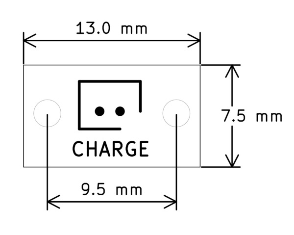 A 2 pin JST-ZH charge connector mounted on a 13x7.5mm GRP plate with 2mm mounting holes at 9.5mm centres.