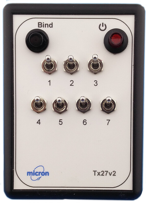 Tx27v2 has an illuminated push-button latching on/off switch.