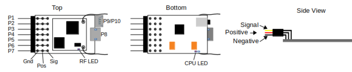 from the top of the diagram below, are 0.1" pitch to take standard R/C plugs.